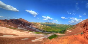 View looking west from the top of West Maroon Pass. The trail continues along the ridge on the right towards Frigid Air Pass.