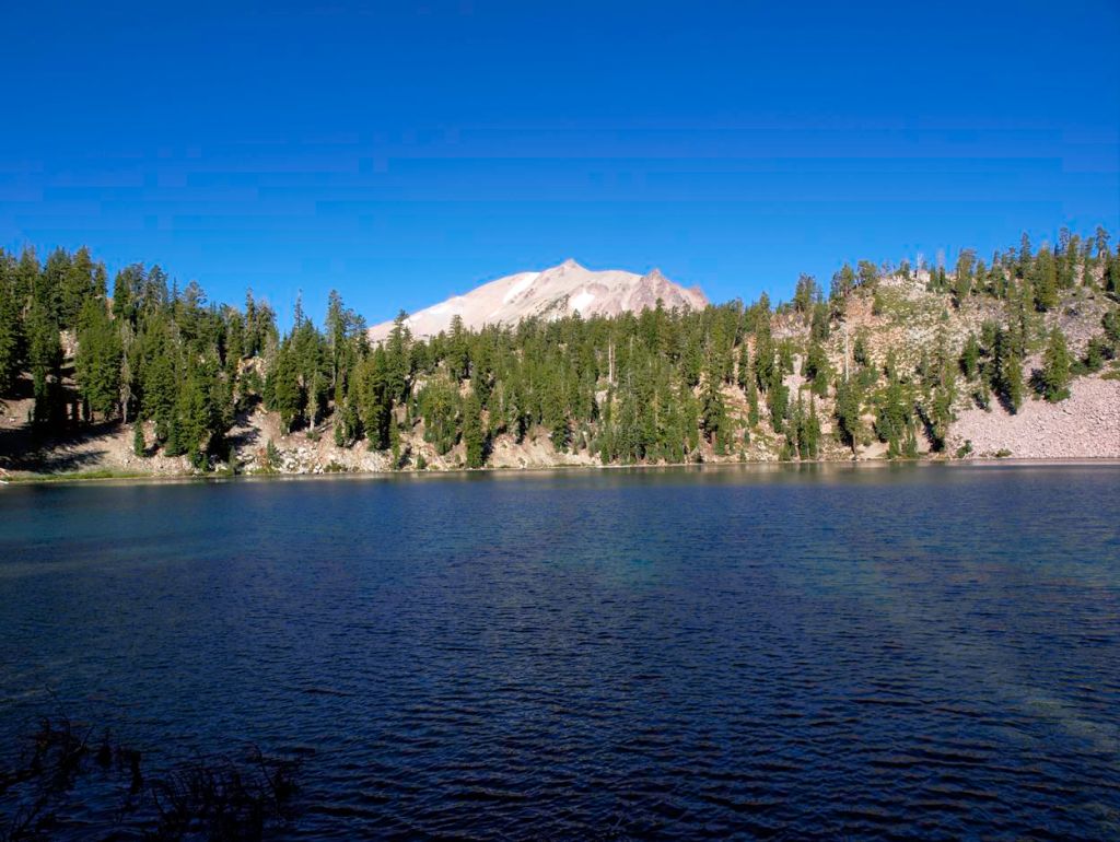 View of Lassen Peak from the shore of Shadow Lake