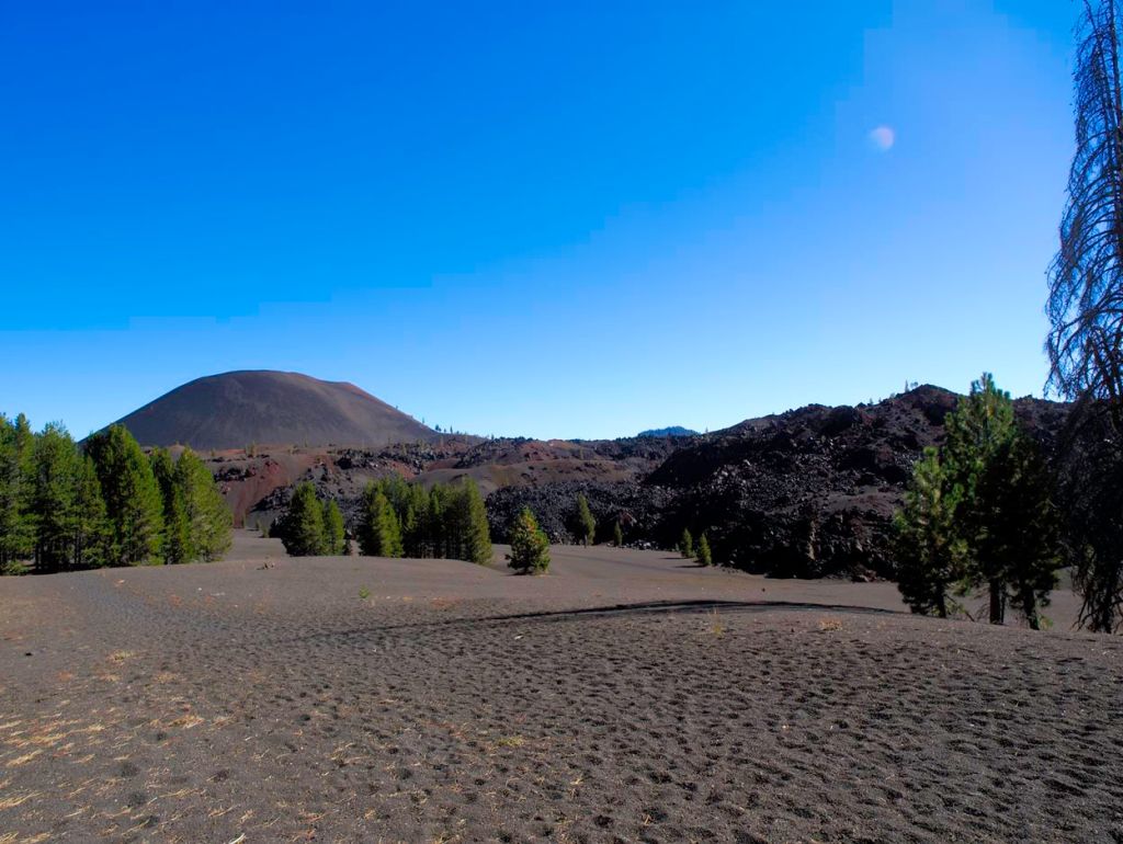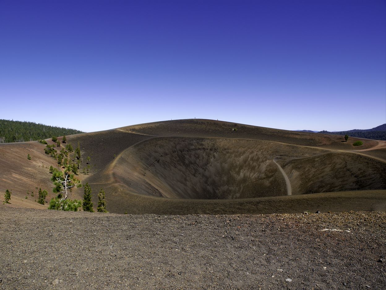 There is a spiraling trail that leads to the bottom of the Cinder Cone