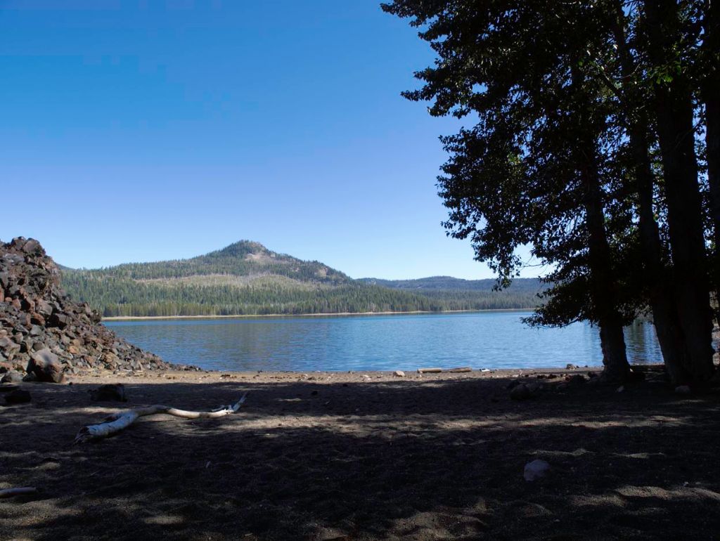 Campsite along the shore of Rainbow Lake in Lassen Volcanic National Park