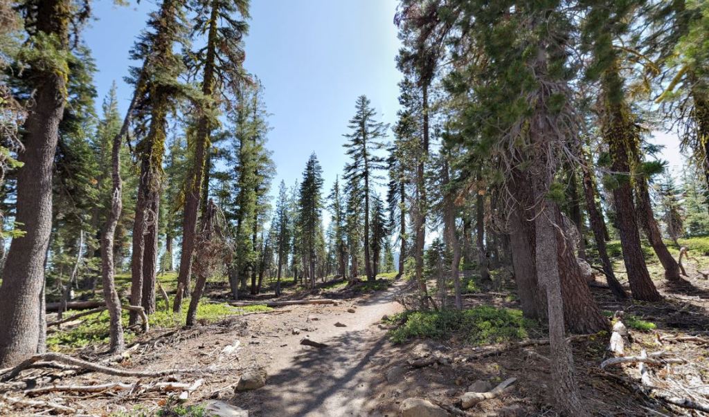 The trail as it skirts along the shore of Shadow Lake in Lassen Volcanic National Park