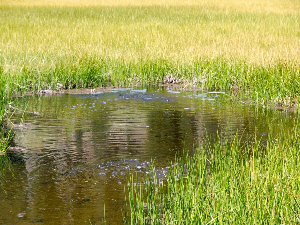 Bubbles rising from the Cold Boiling Lake in Lassen Volcanic National Park