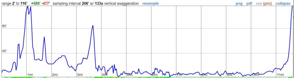 Elevation profile of the Day 2 hike along the Lost Coast Trail in the King Range Wilderness