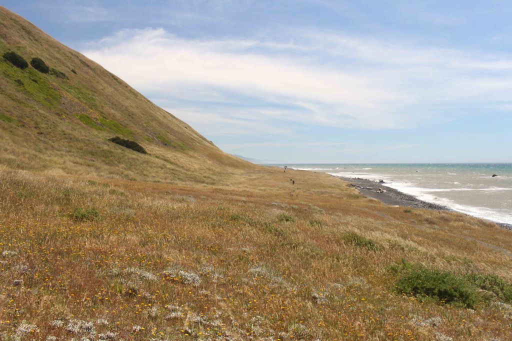 Trip Overview: This ~25 mile route offers a rare coastal wilderness experience where you travel along a beach and must keep track of the tides! The route explores one of the most undeveloped stretches of shoreline in California. Along the way, you hike on the beach, travel over grassy bluffs, and dodge sea lions and ocean waves. +/- 1,000 feet of elevation over the course of this trek with a peak elevation of only ~150 feet. Highlights include coastal views as far as the eye can see, remote beaches, and a variety of wildlife including sea lions, seals, deer, and whales. The majority of the images here are from a trip in mid May. Unless otherwise noted all photos were taken by Richard O’Neill and are reused with permission.