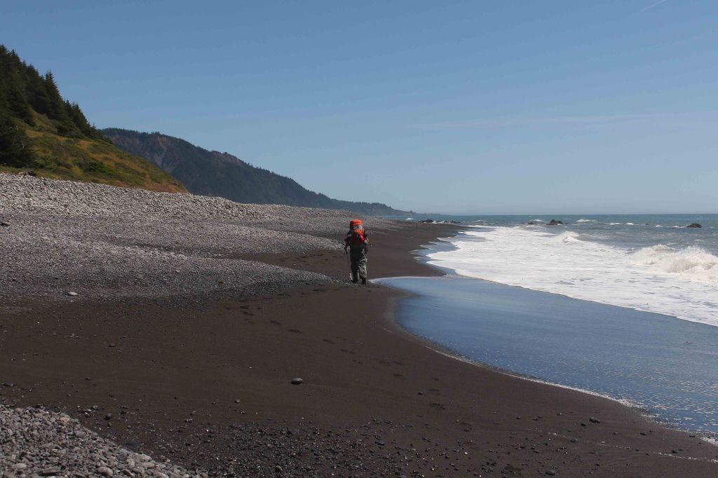 Trail Conditions and Difficulty: The Lost Coast Trail can be deceptively difficult for many backpackers. Although it is only 25 miles long and does not have any significant elevation gain, the footing along the trail is often challenging. Along the way you must hike over shifty sand, over boulders, and over small rocks. Expect to hike slower than your normal pace!
