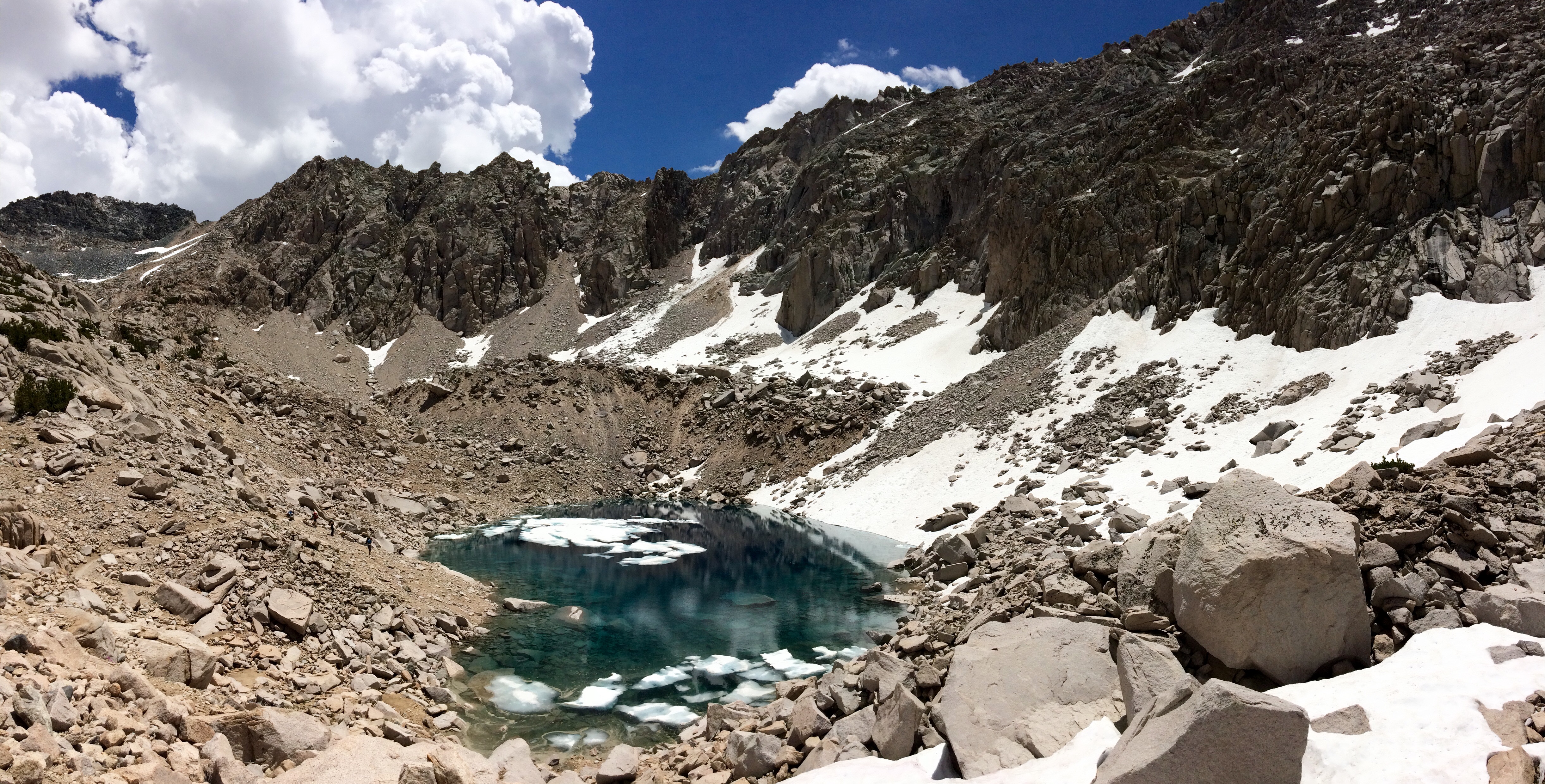 Before the final ascent up Glen Pass you reach a lake that has crystal blue water. This is a nice spot for a short break. The lake sits at 11,260 feet.