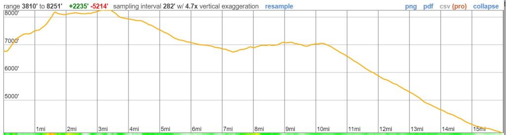 Day 2: 16 miles; +2,200 / -5,200 feet; Curator Camp to North Skyline/Signal Mountain Trailhead