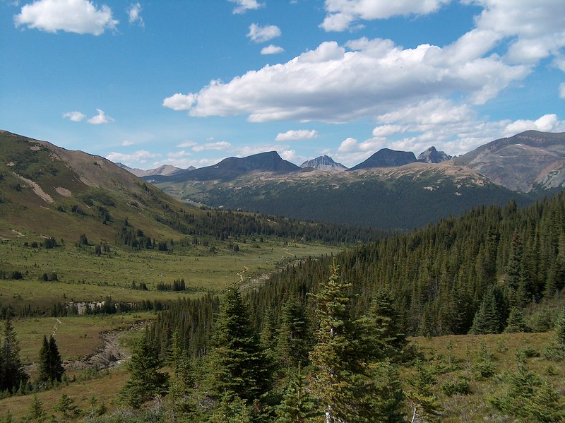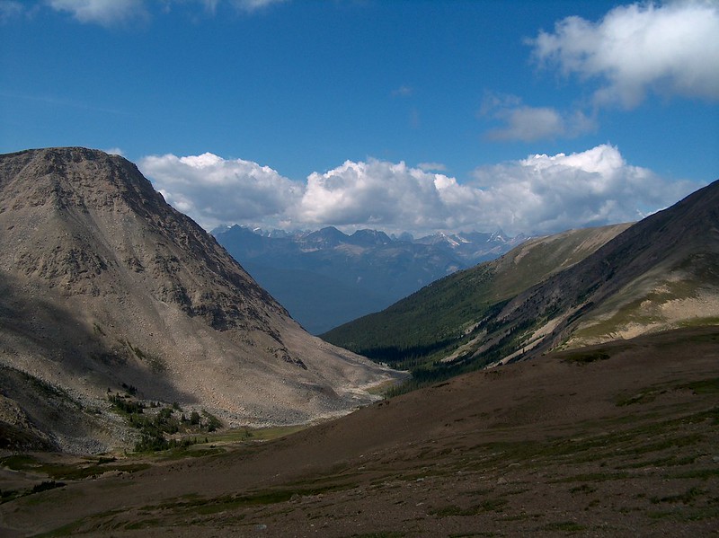View looking southeast from the top of Little Shovel Pass in Jasper National Park