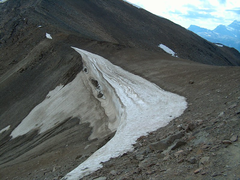 Snow cornice at the top of The Notch on the Skyline Trail. Early in the season this mountain pass can be unsafe to traverse.