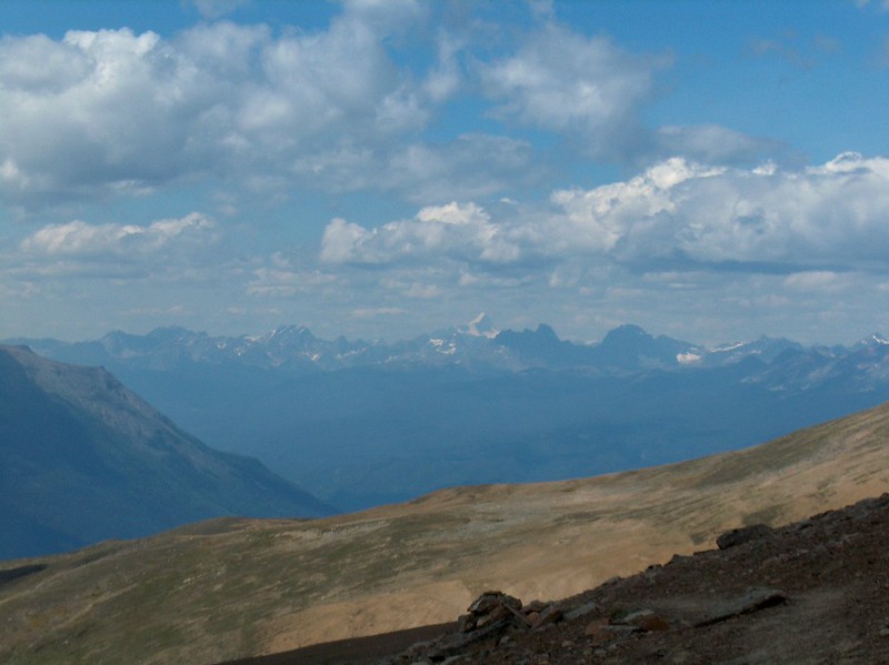 View of Mount Robson in the distance, seen from atop The Notch on the Skyline Trail