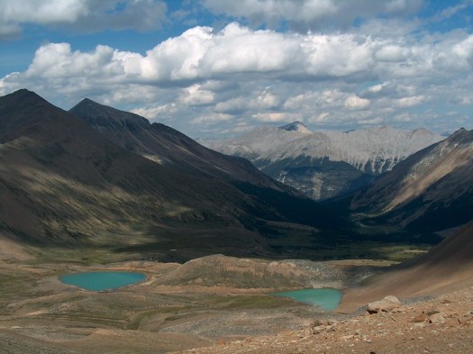 Several turquoise tarns seen to the north of Amber Mountain, along the Skyline Trail