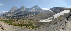 Hikers descending down from Hurricane Pass. The trail follows several switchbacks and you get great views along the way.