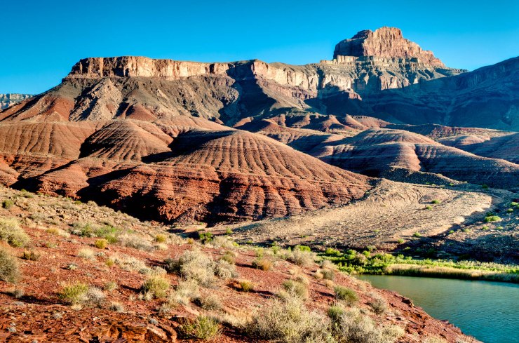 The hike on the first day is the longest of the trek at roughly 12 miles in distance. The majority of the hike is downhill, so while your knees will be tired, you will not be climbing any significant elevation. Given the length, it is best to start hiking early in the morning. This will allow you to get close to the Colorado River (your first water access point) before the temperatures really heat up.