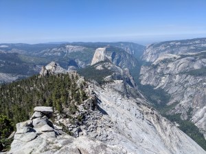 The trail then continues southwest over the summit of Clouds Rest and down towards Half Dome and the Quarter Domes