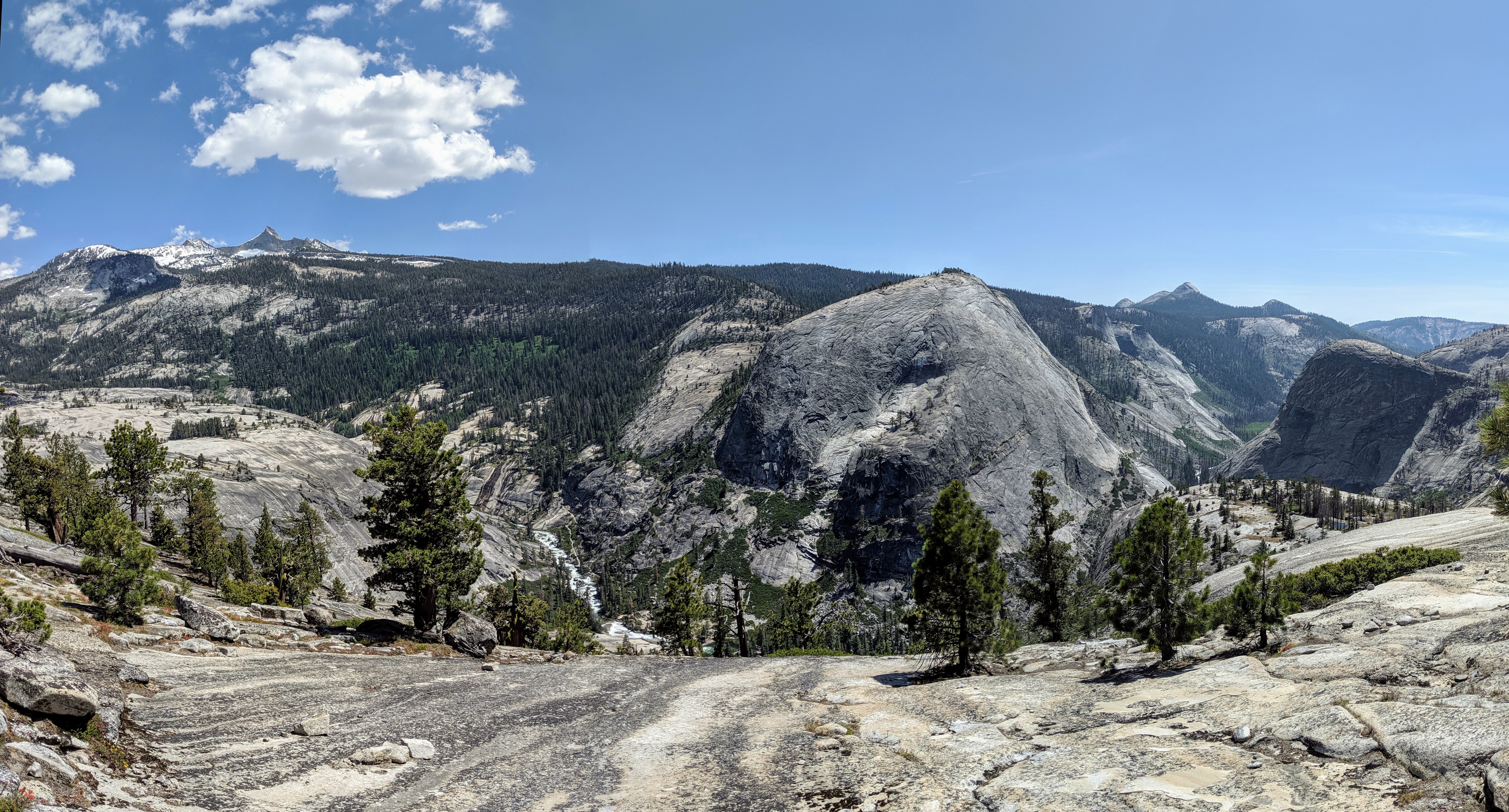 Panoramic view showing the Merced River valley to the left and Bunnell Point and the Lost Valley to the right.